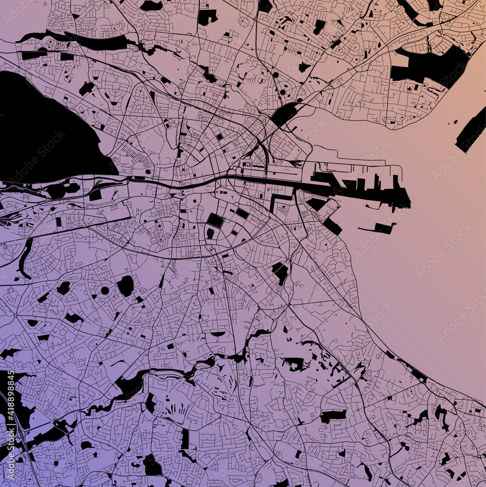 Dublin, Ireland (IRL) Urban vector city map with parks, rail and