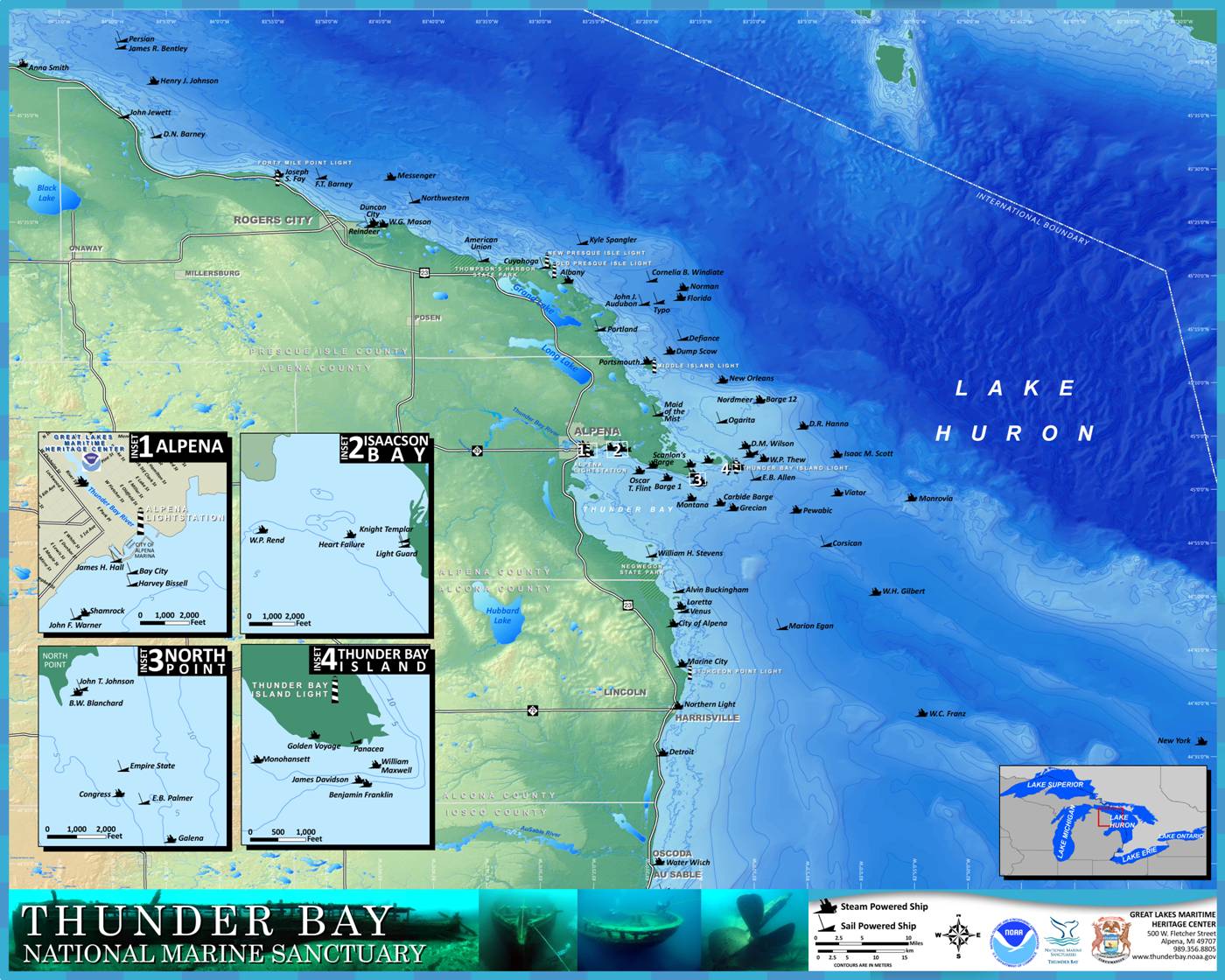 Thunder Bay Shipwrecks Map – Thunder Bay National Marine Sanctuary staff members install new signage along the Great Lakes Maritime Heritage Trail along the Lake Huron shoreline in Iosco, Alcona, Alpena, Presque Isle and . Thunder Bay was designated as an Area of Concern (AOC) in 1987 under the Canada-U.S. Great Lakes Water Quality Agreement. Years of contamination, primarily from the forest products industry, as well .